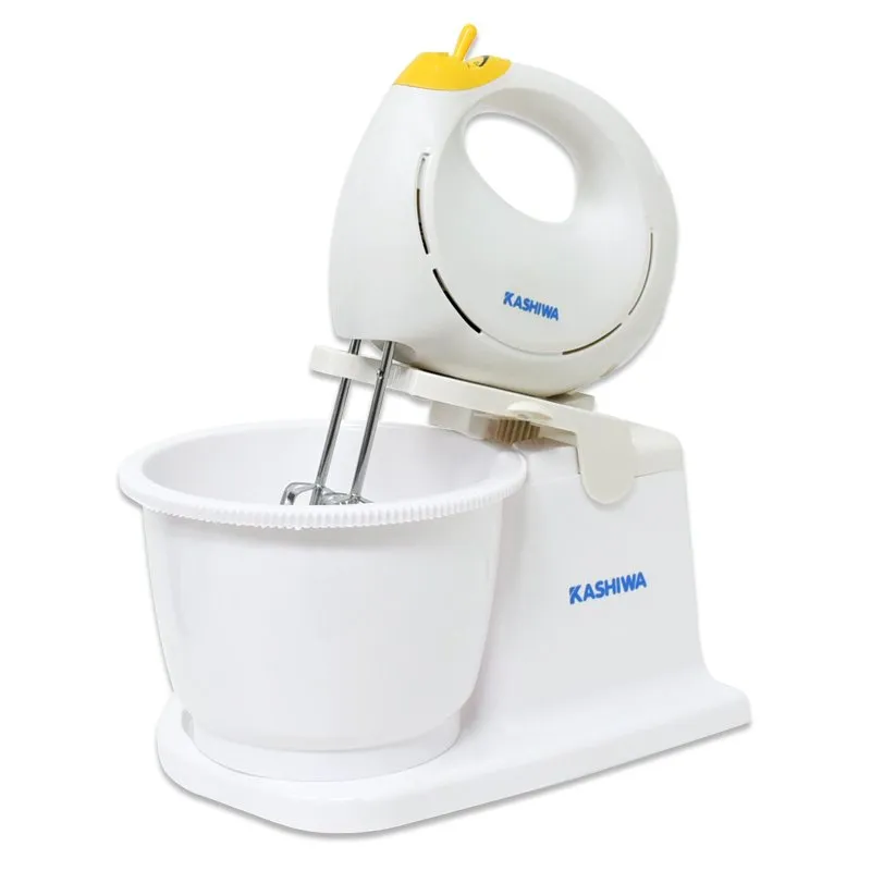 เครื่องตีไข่ ราคา, KASHIWA เครื่องผสมอาหาร รุ่น KW-80 ชนิดของเครื่องตีหรือเครื่องผสมอาหาร ถ้าเดินไปแผนกเครื่องใช้ไฟฟ้าแล้วมองหาเครื่องผสมอาหารจะพบว่ามีหลายยี่ห้อและมีหน้าตาหลายแบบมาก แต่ไม่ต้องตกใจหนึ่งเพราะไม่ว่าจะหน้าตาแบบไหน แต่สุดท้ายเครื่องผสมอาหารมีอยู่ไม่กี่ชนิด หนึ่งขอขอแบ่งตามลักษณะการใช้งาน มี 2 ชนิดคือ Hand mixer หรือเครื่องตีแบบมือถือ มีขนาดเล็ก น้ำหนักเบา ถือไปมาได้สะดวก จะมาแต่ตัวเครื่องและหัวตี ไม่มีโถผสมมาให้ หัวตีที่ให้มาแล้วแต่ยี่ห้อ แล้วแต่รุ่น บางรุ่นให้แค่อย่างเดียว บางรุ่นก็จัดเต็มหัวตีมาทุกแบบ มี blender แบบใบมีดมาให้ด้วยซึ่งแน่นอนว่าราคาก็จะสูงขึ้นด้วย รุ่นมือเดี่ยวตัวเล็กมาก เหมาะสำหรับตีฟองนมแบบเล็กๆ ที่ร้านกาแฟนิยมใช้ สามารถใช้ตีไข่ได้เหมือนกันแต่ต้องเป็นปริมาณน้อยๆ (ลองคิดถึงอาหารฝรั่งเศสที่เสิร์ฟมาแล้วมีฟองๆ ใช้ตัวนี้แหละค่ะตี) แบบกึ่งมือถือ ตัวนี้จริงๆแล้วคือ hand mixer ที่มีแท่นเพิ่มให้นั่นเอง เผื่อว่าไม่อยากถือตีตลอดเวลก็มีแป้นให้วางและมีโถตีให้ด้วย แถมมี option ให้เลือกด้วยว่าโถหมุนได้ หมุนไม่ได้ด้วย เครื่องตีแบบนี้เป็นเครื่องตีตัวแรกที่หนึ่งซื้อมาใช้ด้วย Stand Mixer หรือ เครื่องผสมแบบตั้งโต๊ะ เครื่องตีแบบนี้จะมาแบบ strong และแน่นมากค่ะ เครื่องมีขนาดใหญ่ น้ำหนักเยอะมาก วางแล้ววางเลย เคลื่อนย้ายไปมาลำบาก และราคาสูงกว่าสองแบบข้างต้น แต่จะมีกำลังมากกว่า ปรับความเร็วได้หลายระดับ มาพร้อมโถและหัวตีแบบต่างๆ ที่ออกแบบมาเฉพาะคือใช้ได้กับเครื่องนั้นเท่านั้น ราคาเครื่องตีแบบนี้มีตั้งแต่หลักหลายพันถึงหลายหมื่นแล้วแต่นี่ห้อ บ้านเรามีหลายยี่ห้อ เราแนะนำ