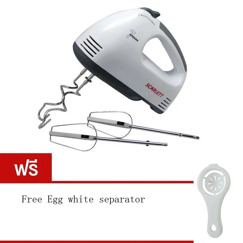 เครื่องตีไข่ ราคา, BEST HS Electric 7 Speed Egg Beater Flour Mixer Mini Electric Hand Held Mixer เครื่องผสมแป้งตีไข่ (White) Free Egg white separator เครื่องผสมอาหาร หรือที่เรียกกันว่า Stand Mixer นั้นเป็นเครื่องที่ใช้งานได้เอนกประสงค์ เอาไว้สำหรับผสมส่วนผสมต่างๆ ให้เข้ากัน ไม่ว่าจะเป็นการตีไข่, ตีครีม, ตีเนย, ตีแป้ง รวมถึงผสมส่วนผสมต่างๆ ตัวเครื่องจะมีหัวให้เปลี่ยน 3 หัว เอาไว้ตีของที่มีลักษณะที่แตกต่างกัน โดยทั่วไปแล้วเครื่องผสมอาหารมีหลายขนาด มีทั้งขนาดเล็กที่ใช้มือถือ หรือ ถอดเฉพาะเครื่องมาตีกับชาม หรือ เป็นขนาดใหญ่ขึ้นมาอีกหน่อยที่เป็นขนาด 4 ถึง 5 ลิตรที่เป็นลักษณะเครื่องไม่ใหญ่มากนัก เหมาะสำหรับไว้ใช้งานในครัวเรือน สำหรับเครื่องผสมอาหารเครื่องเล็กๆ นั้นเราไม่ได้จำหน่าย เราเน้นแต่เครื่องผสมอาหารสำหรับใช้งานเชิงพาณิชย์ ซึ่งต้องเป็นเครื่องที่ที่ขนาดใหญ่พอสมควร ใช้งานได้ทนทาน และมีราคาไม่แพง คุณลักษณะเฉพาะของเครื่องที่เราจำหน่าย ตัวเครื่องขนาดเริ่มต้น 10 ลิตร โดยขนาดเริ่มต้น 10 ลิตร เหมาะสำหรับผู้ที่เริ่มทำเบเกอรี่เป็นอย่างยิ่ง ขนาดโถตี 10 ลิตรขนาดกำลังเหมาะสมกับผู้ที่เริ่มต้นและยังมีราคาไม่แพง หลายท่านอาจจะมีการเปรียบเทียบเครื่องกับเครื่องที่ราคาถูกกว่าหรือแพงกว่านี้ เราแนะนำ